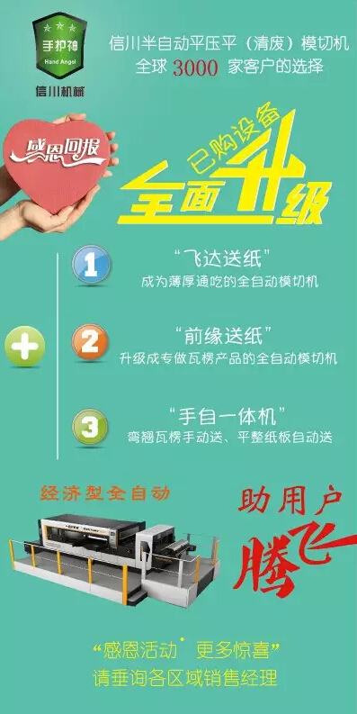 信川堅(jiān)持以客戶(hù)需求為設(shè)備研發(fā)出發(fā)點(diǎn),針對(duì)不同客戶(hù)的工藝需求,為其提供“模切機(jī)超市”定制化的購(gòu)機(jī)模式。其中“手護(hù)神”系列半自動(dòng)平壓平模切機(jī)一度產(chǎn)銷(xiāo)量占全國(guó)同系列的50%,成為中國(guó)最暢銷(xiāo)的平壓平模切機(jī)。